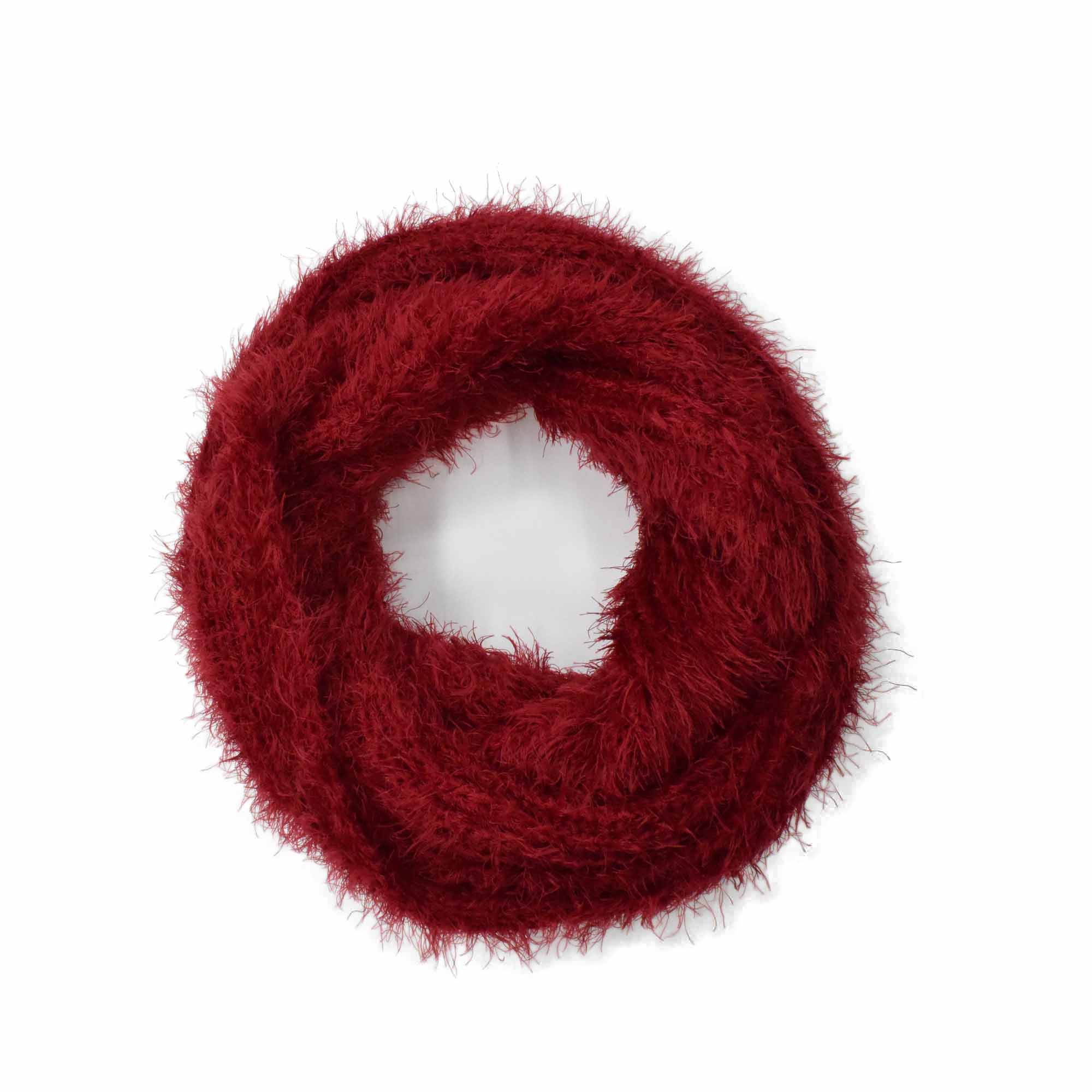✅ Bufanda infinita delgada, tejido de punto trenzado, color rojo con detalle de hilos largos, suave al tacto.