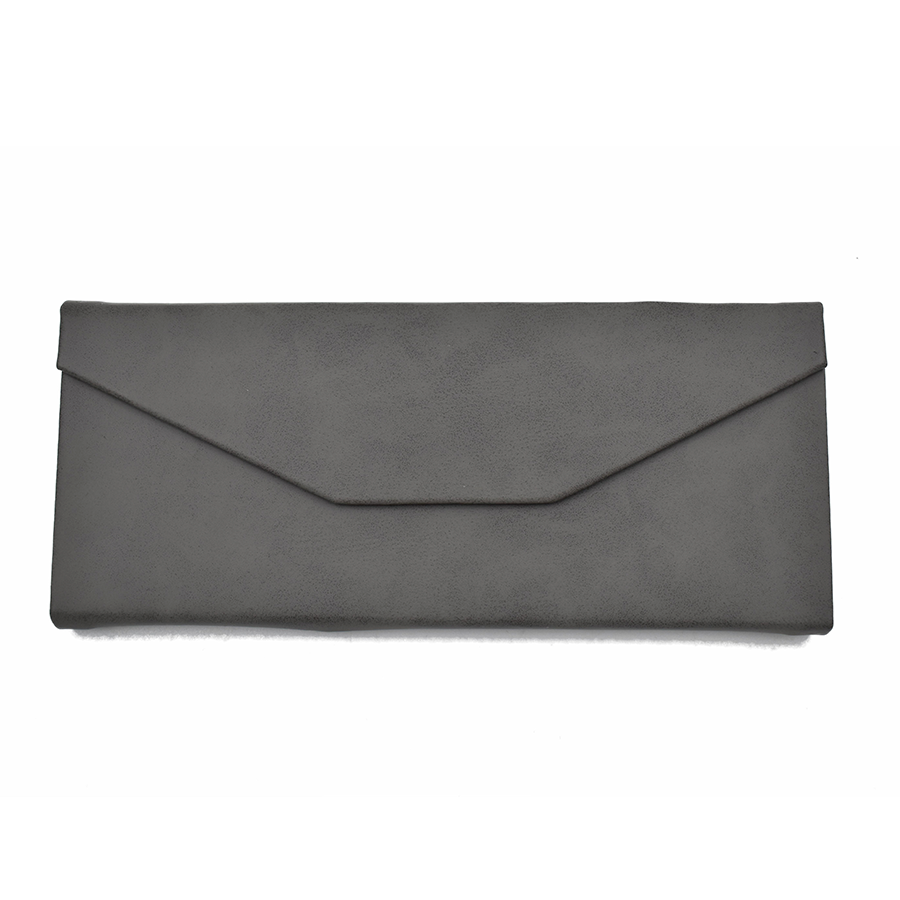 Estuche para lentes color gris, forma de triángulo texturizado, forro suave para evitar ralladuras, tamaño ideal para llevarlo a todas partes, diseño elegante, ligero y plegable. Protege tus anteojos de sol y/o anteojos de lectura.