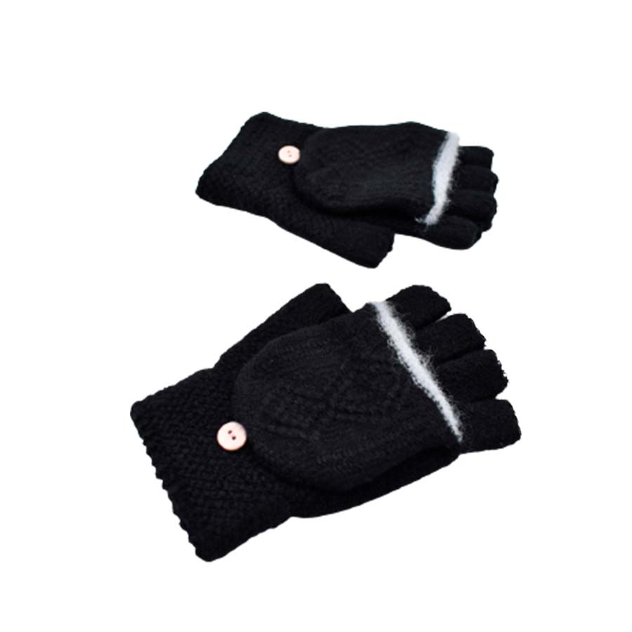 Guantes cortos tejidos, color negro, con solapa para proteger los dedos descubiertos a tono, diseño de franja gris, stretch para ajustarse al tamaño de tu mano.