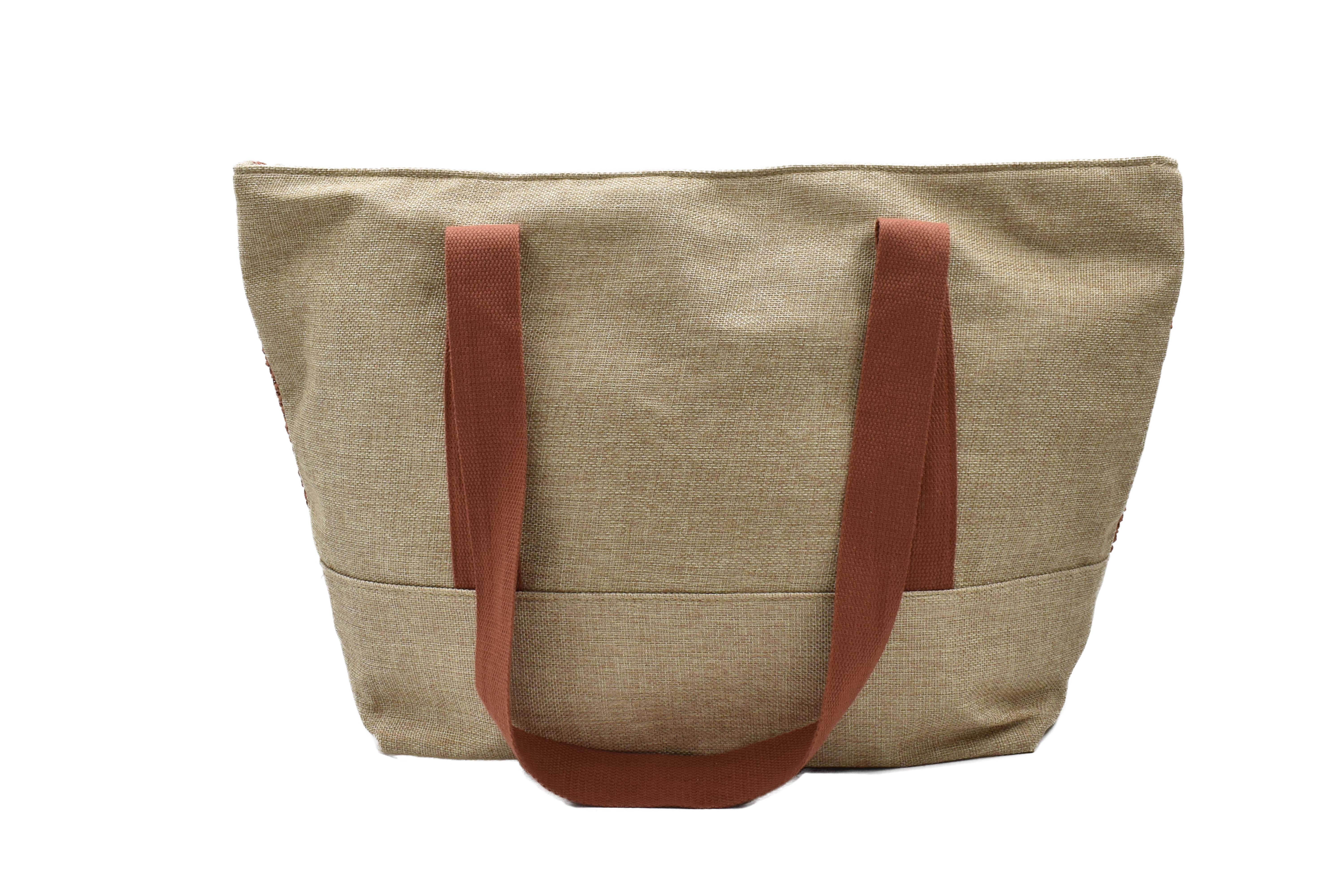 ADORN, Bolsa de playa con tejido café, espacio ideal para llevar tus cosas de vacaciones. Color: Café Medidas: 66 cm x 56 cm x 17 cm Material: 100% Polipropileno 100% Poliéster Instrucciones de cuidado: Limpiar con un paño húmedo, no usar jabón, ni detergente, ni blanqueadores, no exprimir, no planchar, no usar secadora.