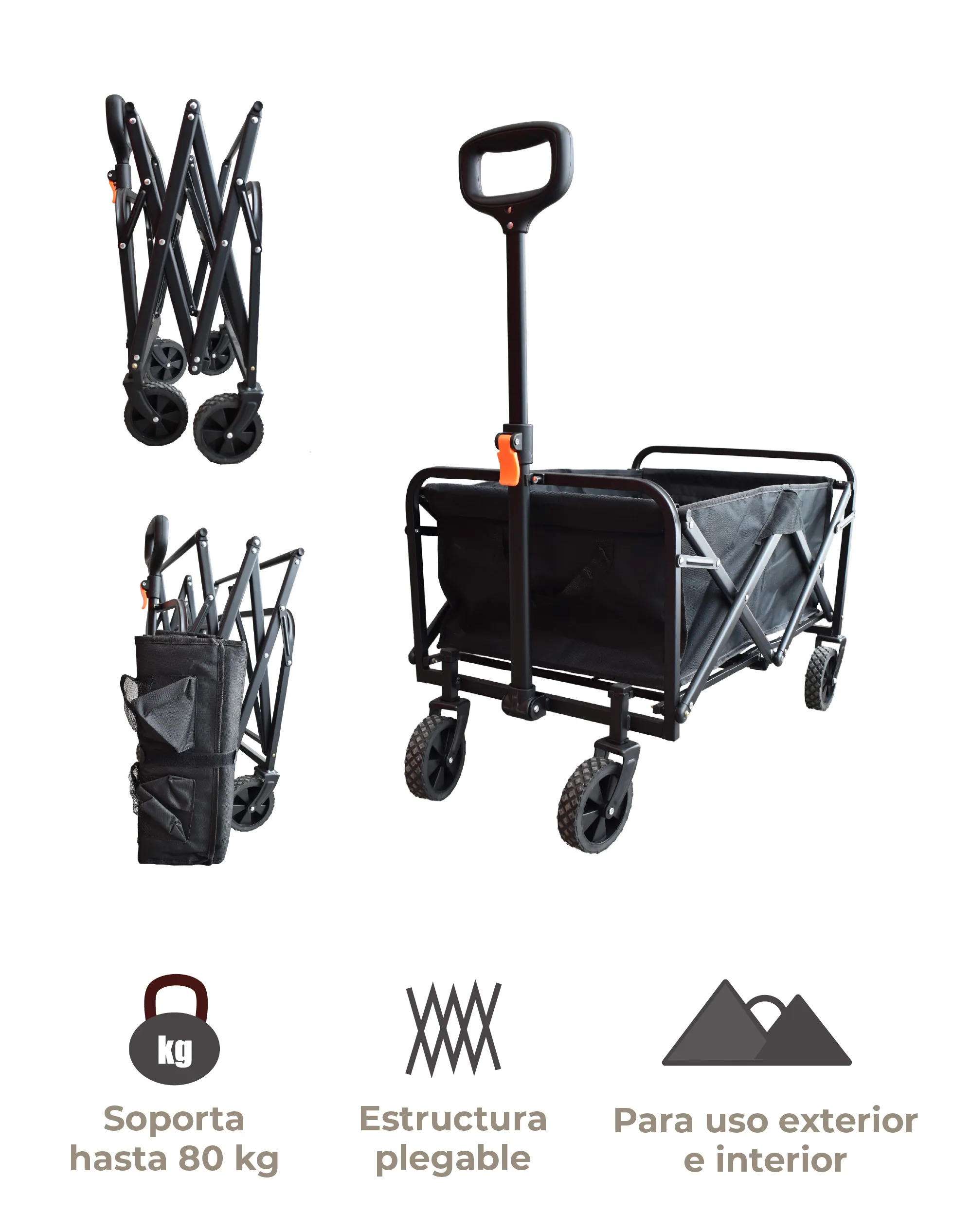Lleva tus cargas con facilidad: nuestro carrito es la solución perfecta para cualquier tarea Materiales: Metal, polipropileno Medias: 80 cm x 48 cm x 91 cm Vagón: 70 cm X 42 cm X 32 cm Capacidad de Carga: 80 kg Llantas: 4 Instrucciones de Cuidado:Limpiar con paño húmedo, no usar jabón, detergente ni blanqueadores, no exprimir, no planchar, no usar secadora, agregue periódicamente aceite lubricante al cojinete.