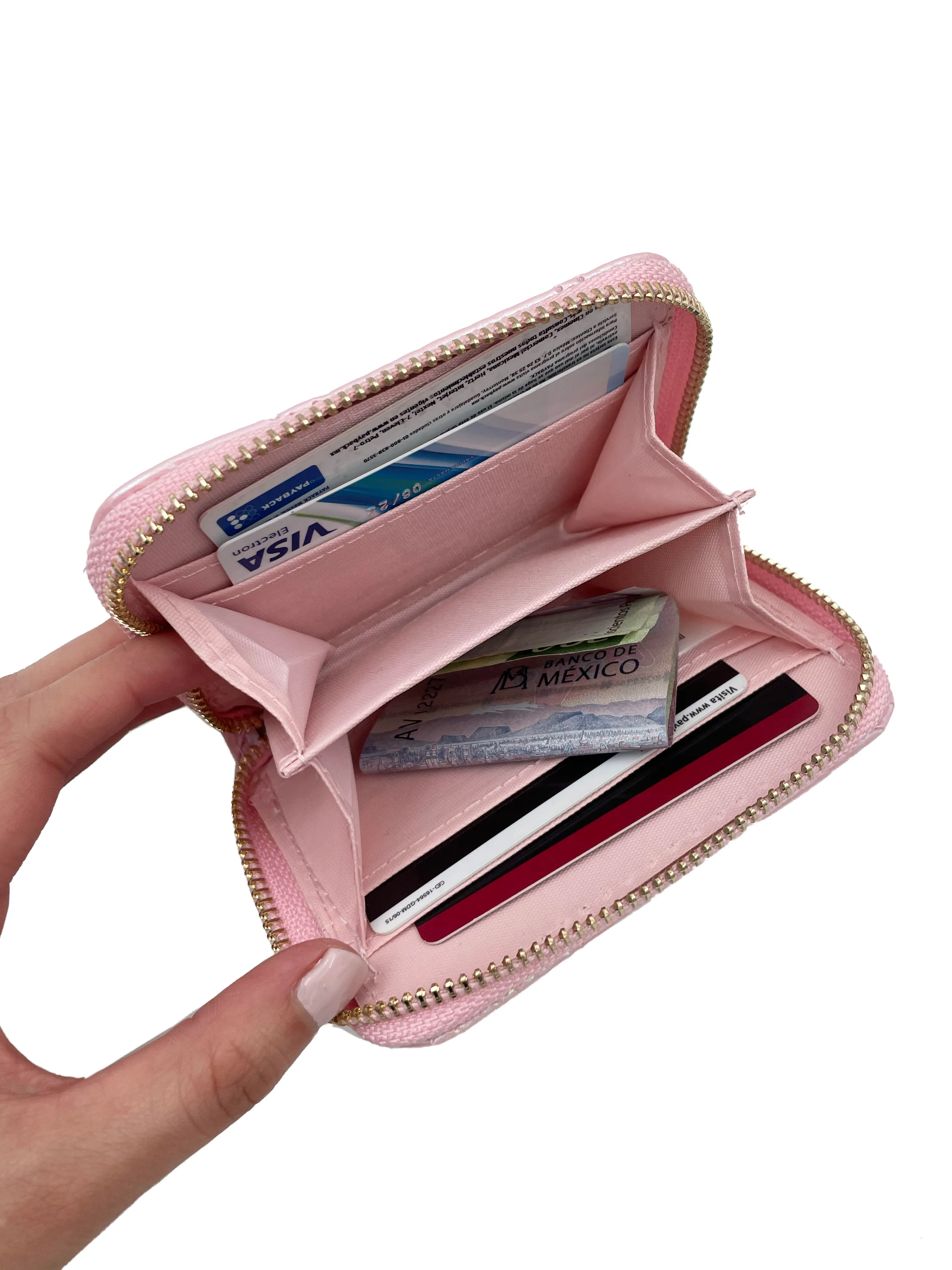 Cartera Básica Corazones Capitonado Rosa Efecto Tornasol