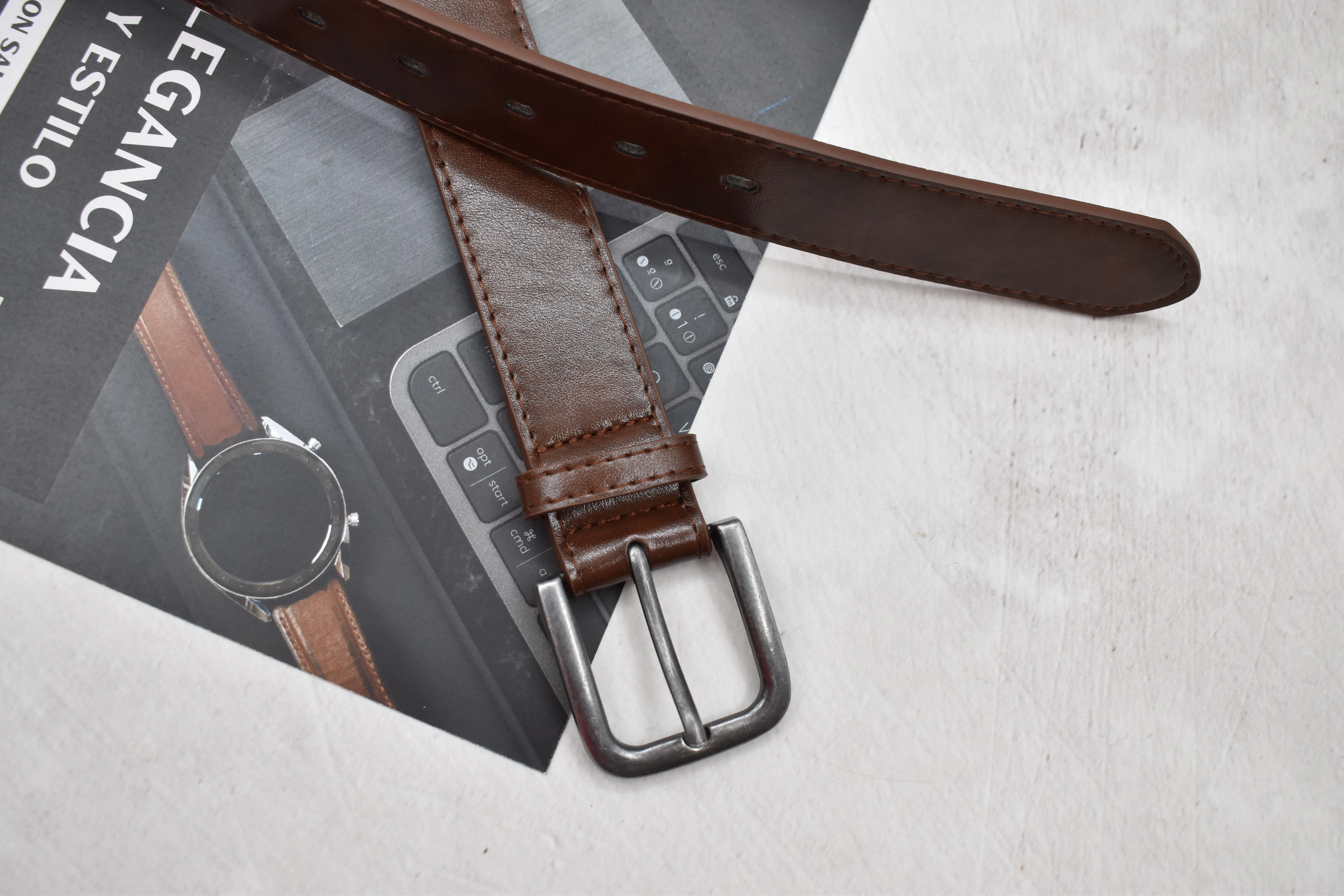 Cinturón, hebilla cromada. Ideal para combinar con tus atuendos preferidos. Color: Café Talla: Mediana 109cm Ancho: 3.4 cm Hebilla 5 cm largo x 5 cm ancho Material: 100% Poliuretano Instrucciones de cuidado: Limpiar con un paño seco.