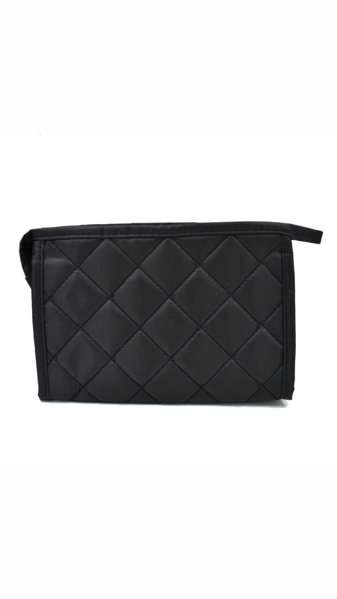 Cosmetiquera rectangular color negro, diseño en rombos a tono, cuenta con cierre a tono. Amplio espacio para guardar todas tus pertenencias. Color: Negro Medidas: 13 cm alto x 19.5 cm largo x 5 cm ancho. Composición: 100% Poliéster Instrucciones de cuidado. Lavar a mano con agua tibia (30°C), usar jabón neutro, no usar detergente ni blanqueadores, no exprimir, secar colgado a la sombra, no planchar.
