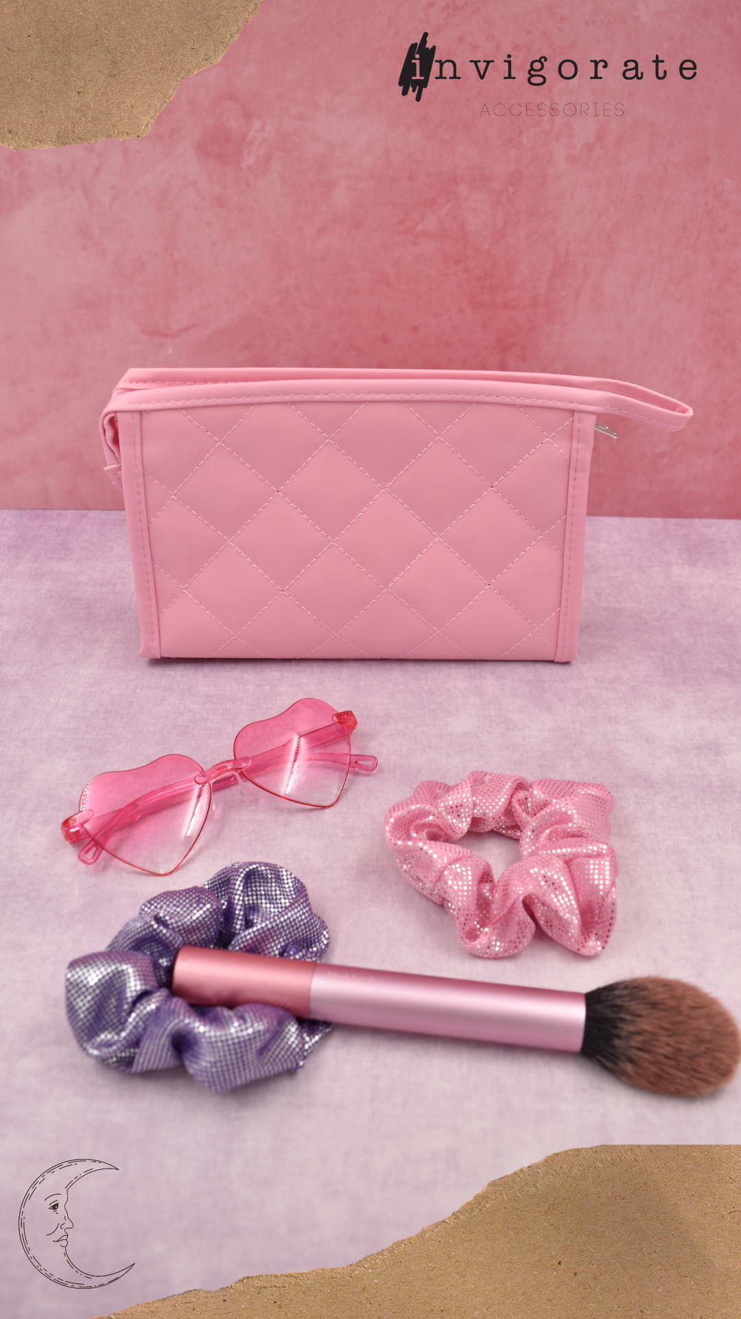 Cosmetiquera rectangular color rosa, diseño en rombos a tono, cuenta con cierre a tono. Amplio espacio para guardar todas tus pertenencias. Color: Rosa Medidas: 13 cm alto x 19.5 cm largo x 5 cm ancho. Composición: 100% Poliéster Instrucciones de cuidado. Lavar a mano con agua tibia (30°C), usar jabón neutro, no usar detergente ni blanqueadores, no exprimir, secar colgado a la sombra, no planchar.