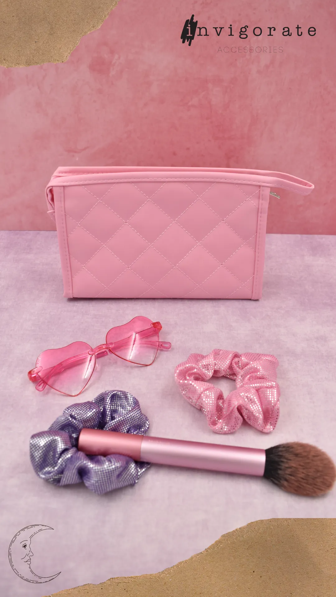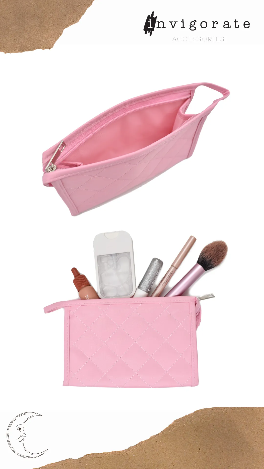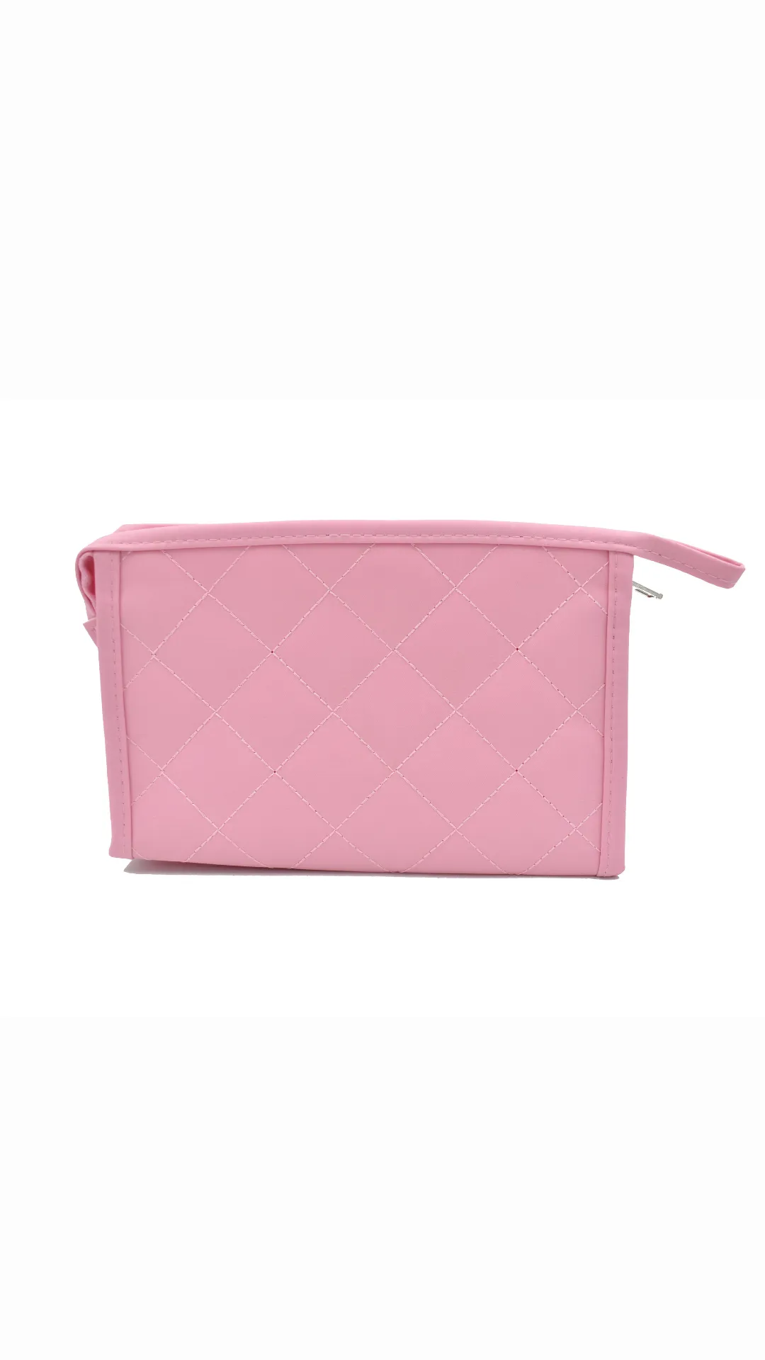 Cosmetiquera rectangular color rosa, diseño en rombos a tono, cuenta con cierre a tono. Amplio espacio para guardar todas tus pertenencias. Color: Rosa Medidas: 13 cm alto x 19.5 cm largo x 5 cm ancho. Composición: 100% Poliéster Instrucciones de cuidado. Lavar a mano con agua tibia (30°C), usar jabón neutro, no usar detergente ni blanqueadores, no exprimir, secar colgado a la sombra, no planchar.