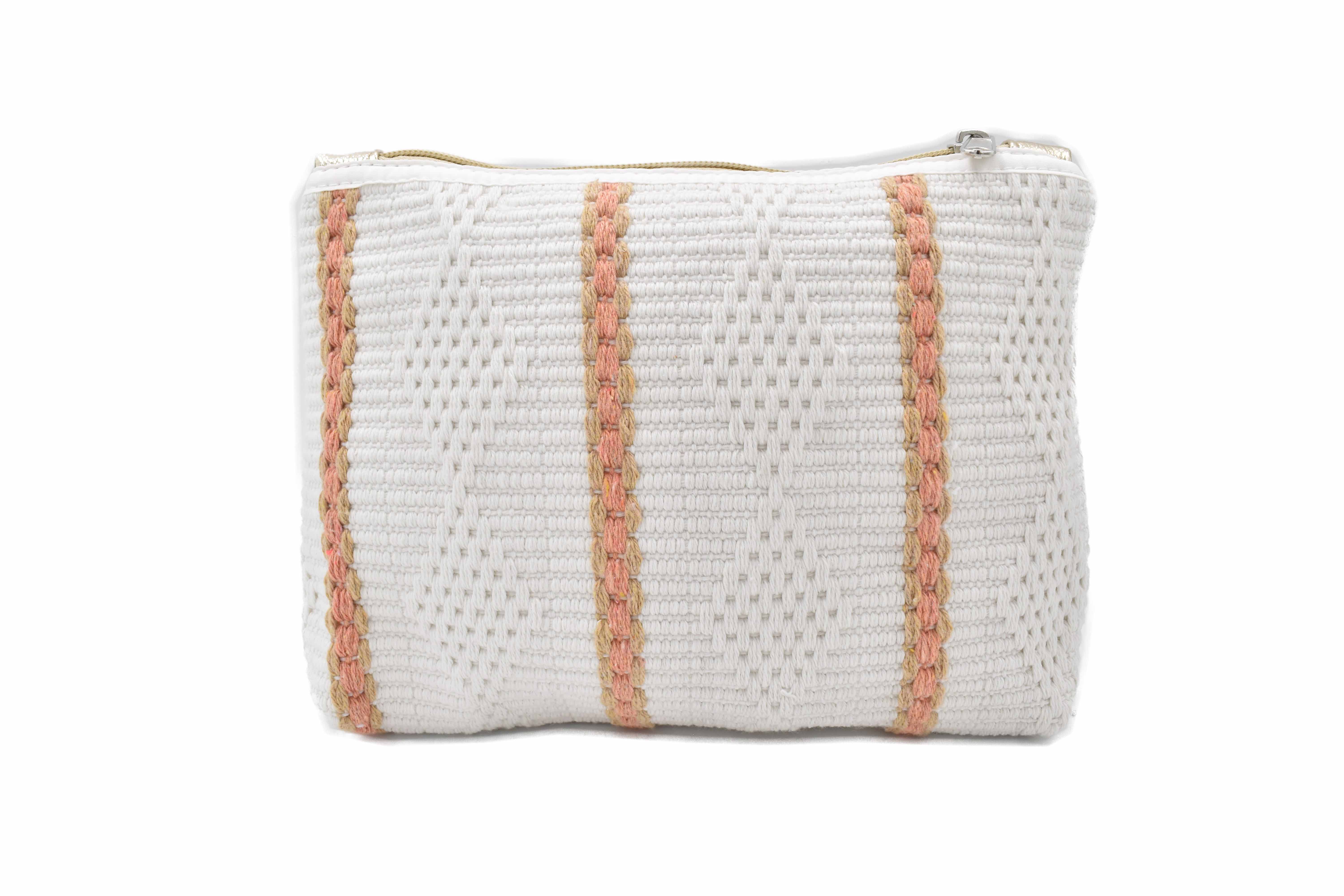 Cosmetiquera textil con detalle de bordado en diferente patrón. Elegante cosmetiquera para dama color café / ivory, diseño y textura bordado e diferentes patrones, cuenta con cierre. Medidas: 16 cm alto x 21 cm largo x 6 cm ancho. Composición: 52% poliéster, 30% algodón, 18% viscosa. Forro: 100% poliéster
