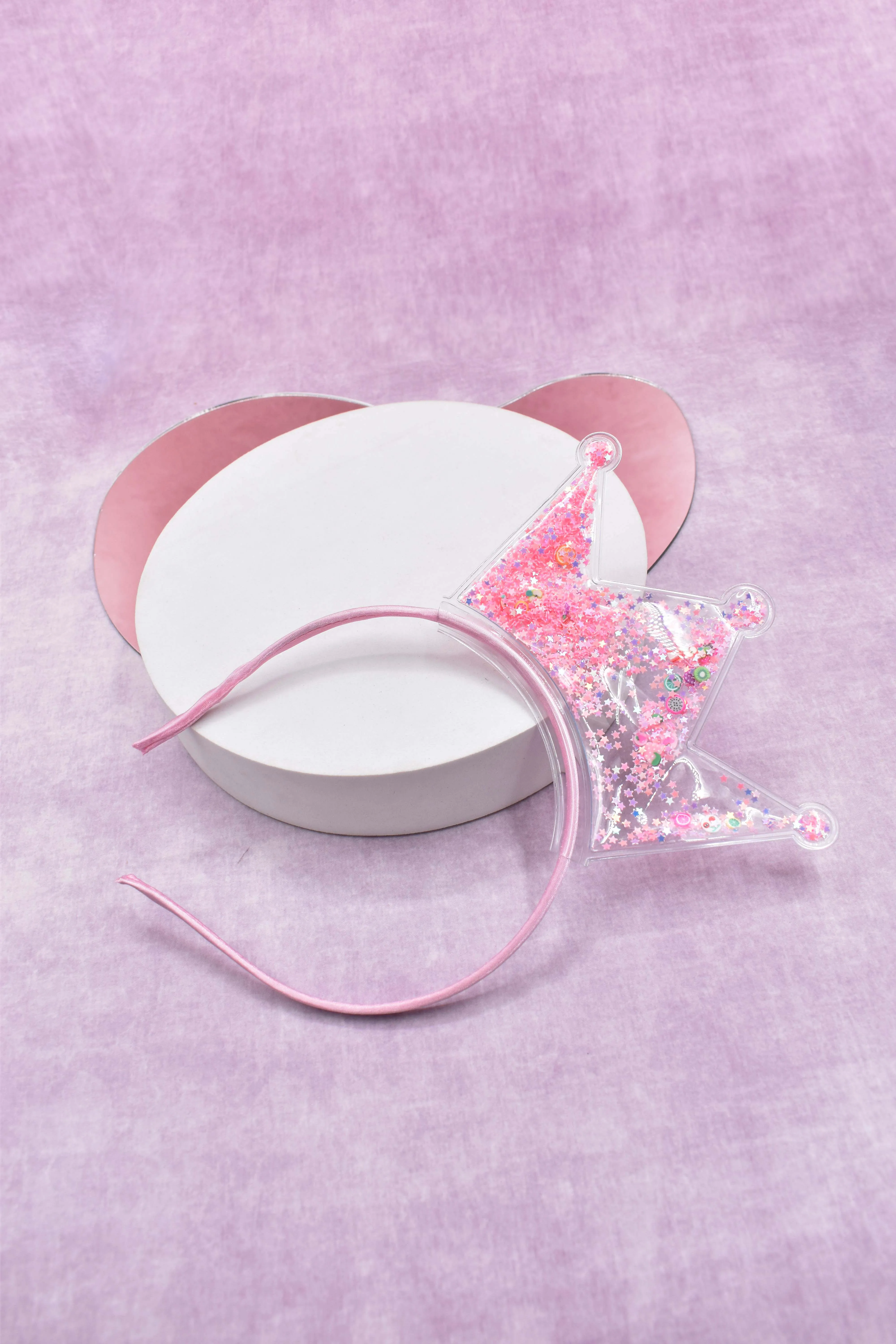 Diadema de corona translucida con estrellas rosa, ideal para las pequeñas del hogar. Colores: Rosa Medidas: 21cm alto x 1cm largo x 12cm ancho Composición: Policloruro de vinilo Instrucciones de cuidado: Limpiar con un paño seco