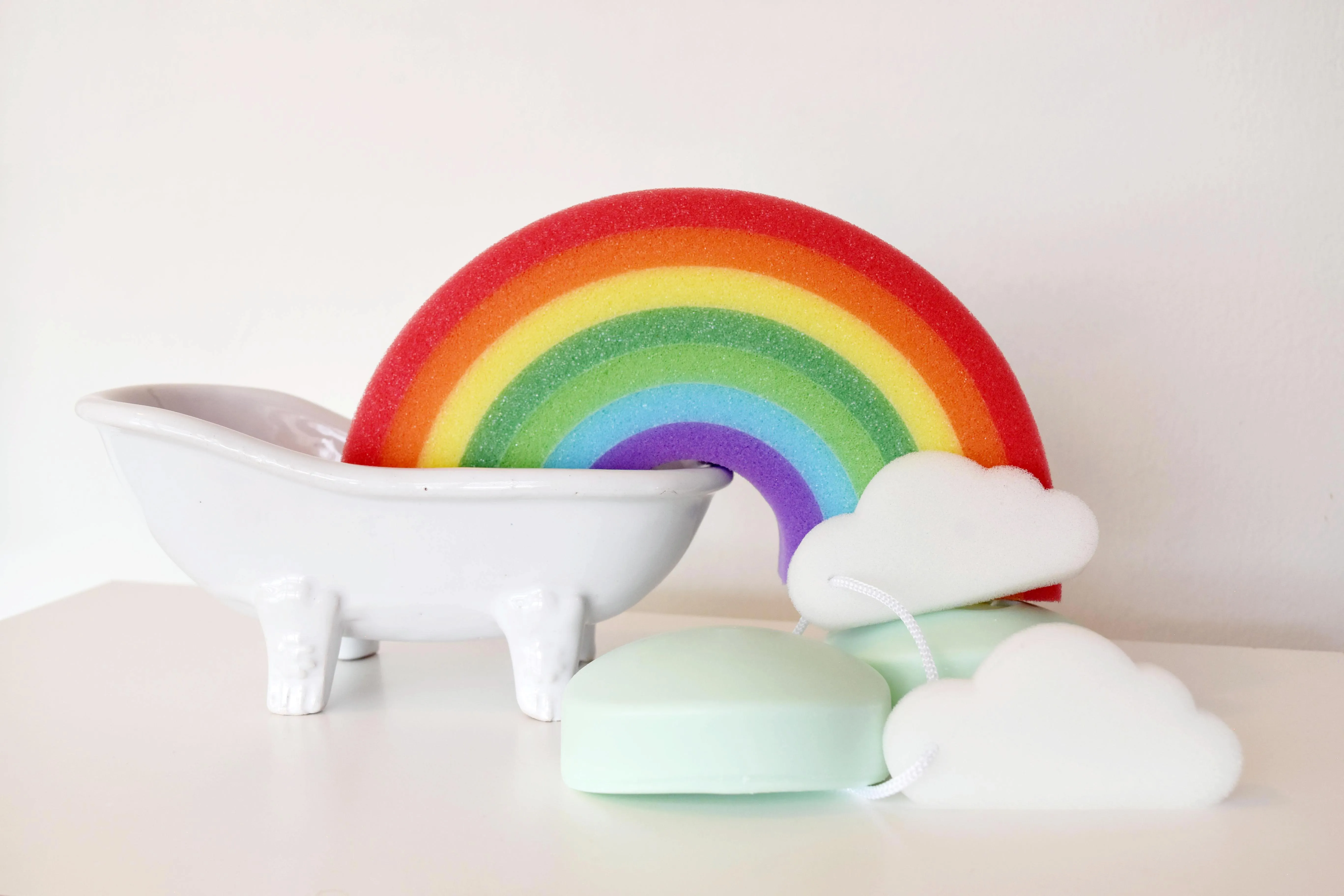 Esponja para niños en forma de arcoíris, detalle de esponja y 2 estropajos a las orillas, suave al tacto, cómoda de usar, lavable y reutilizable, fácil de limpiar y secar, adecuado para el baño diario, también adecuado para exfoliar suavemente. Medidas: 25 cm alto x 11 cm largo x 7 cm ancho Composición: 100% Poliéster Relleno: 100% Polipropileno. Instrucciones de Cuidado: Lavara mano con agua tibia 30°C, usar detergente ni blanqueadores, no exprimir, secar colgado a la sombra, no planchar.