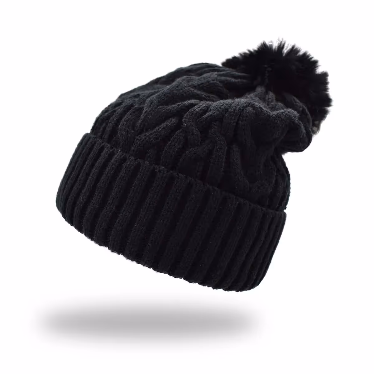 Gorro básico con pompón color negro. Perfecto para añadir un toque relajado y cálido a cualquier atuendo invernal Medidas: Largo-26cm Ancho-19cm Alto-5cm Composición: 100% Acrílico Instrucciones de cuidado: Lavar con agua tibia (30°C) usar jabón neutro, no usar detergente ni blanqueadores, no exprimir, secar colgado a la sombra, no planchar, no usar secadora