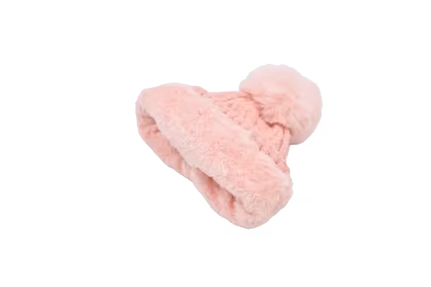 Gorro tejido invernal para dama color rosa, tejido trenzado con pompón de peluche a tono. Cuenta con forro suave en el interior. Gorro stretch para un buen ajuste a tu cabeza. Medidas: 21 cm (sin pompón) 29 cm (con pompón) alto x 19 cm ancho, estira hasta 26 cm Color: Rosa Composición: 80% acrílico 10% elastano 10% poliéster Forro: 100% poliéster Instrucciones de cuidado: Lavar a mano con agua tibia (30°C), usar jabón neutro, no usar detergente ni blanqueadores, no exprimir, secar colgado, no planchar.