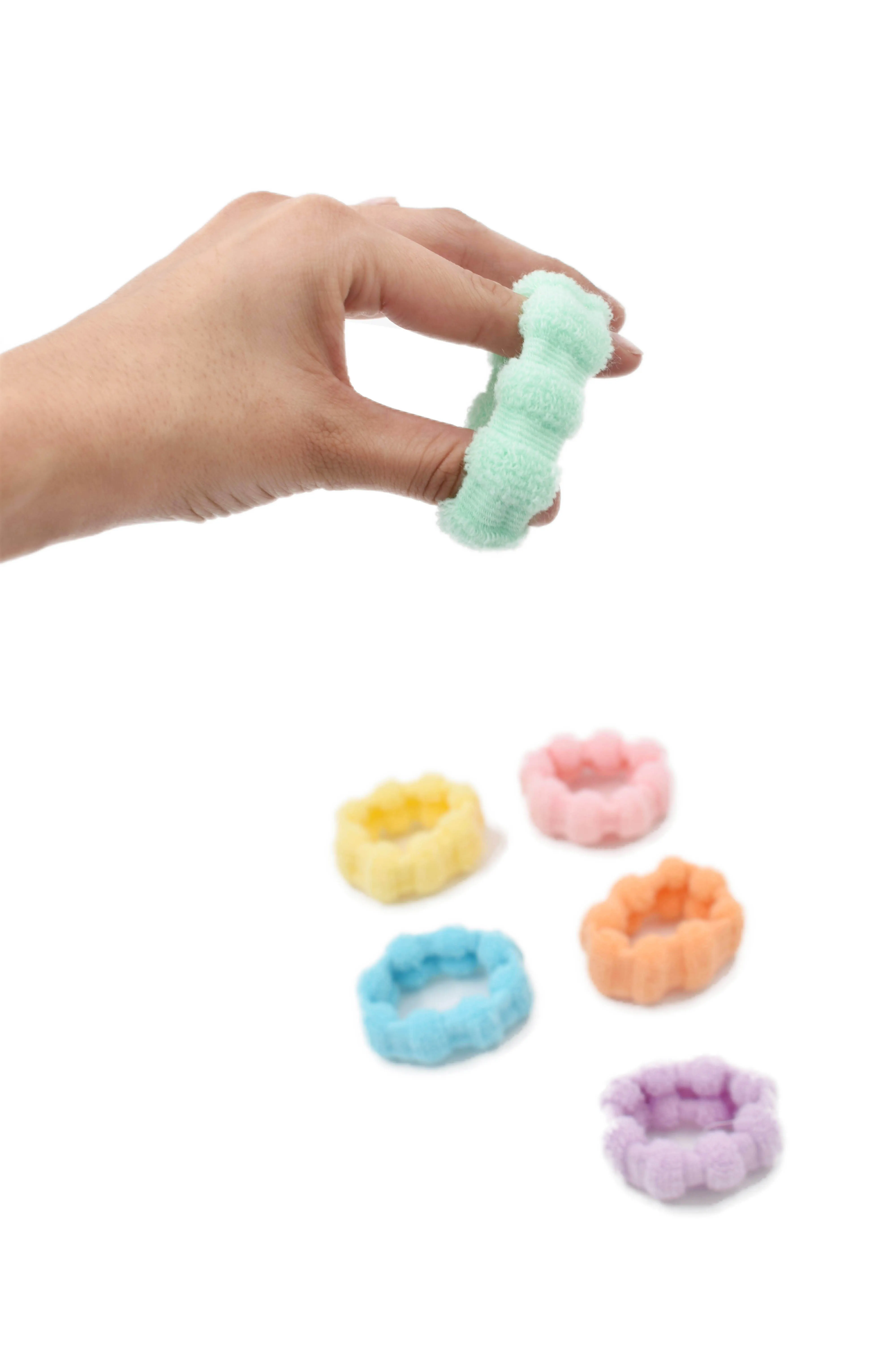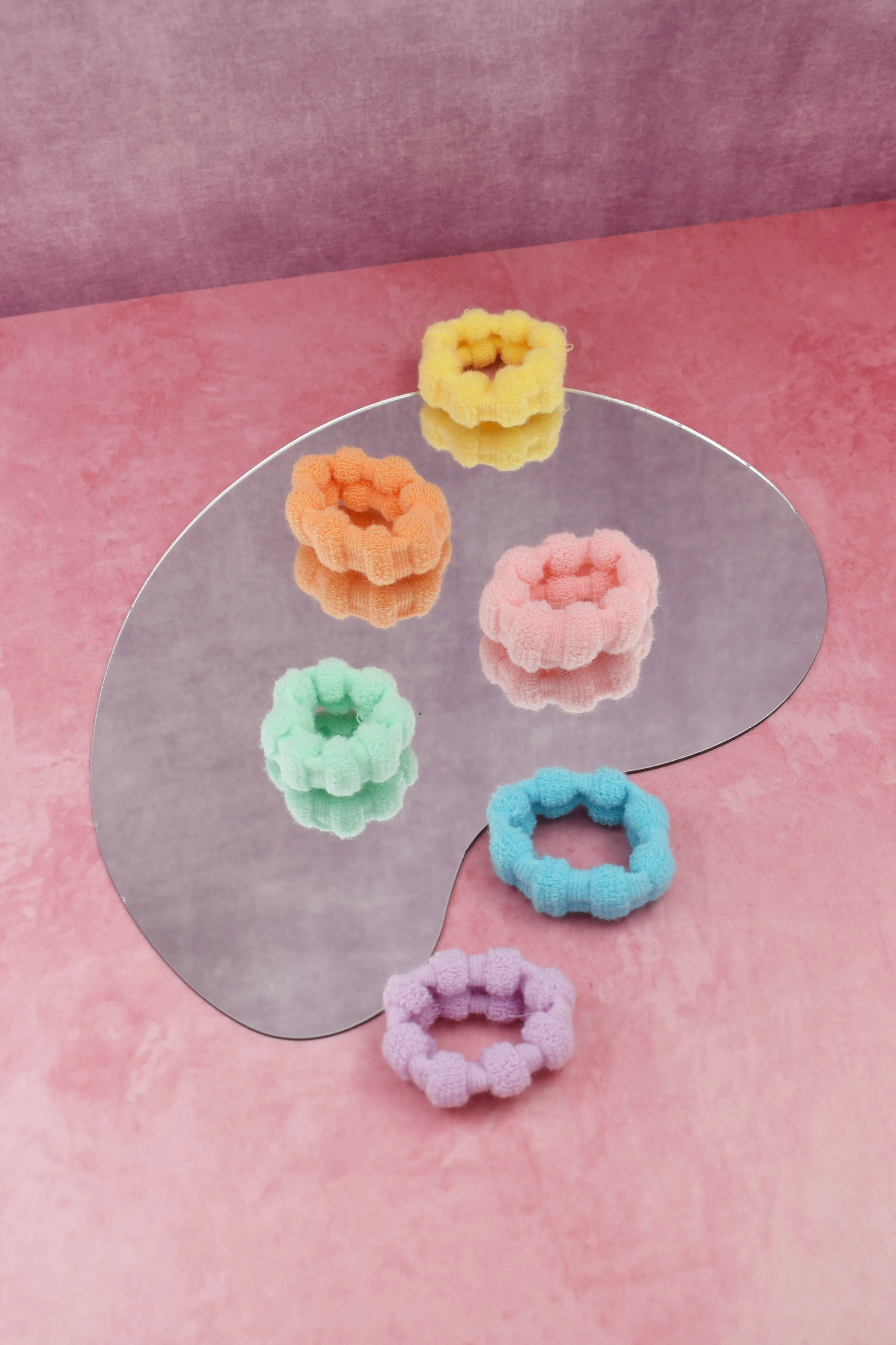 6 donas para cabello, multicolor (anaranjado, verde, amarillo, lila, rosa y azul) suaves al tacto, fácil de usar, no hará daño a su cabello. Incluye estuche trasparente. Medidas: 2.5 cm alto x 6 cm (sin estirar) 11 cm (estirando)largo x 2.5 cm ancho Diámetro: 3 cm Composición: 90% poliéster, 10% elastano Instrucciones de cuidado: Lavar a mano con agua tibia (30°C), usar jabón neutro, no usar detergente ni blanqueadores, no exprimir, secar colgado a la sombra, no planchar.