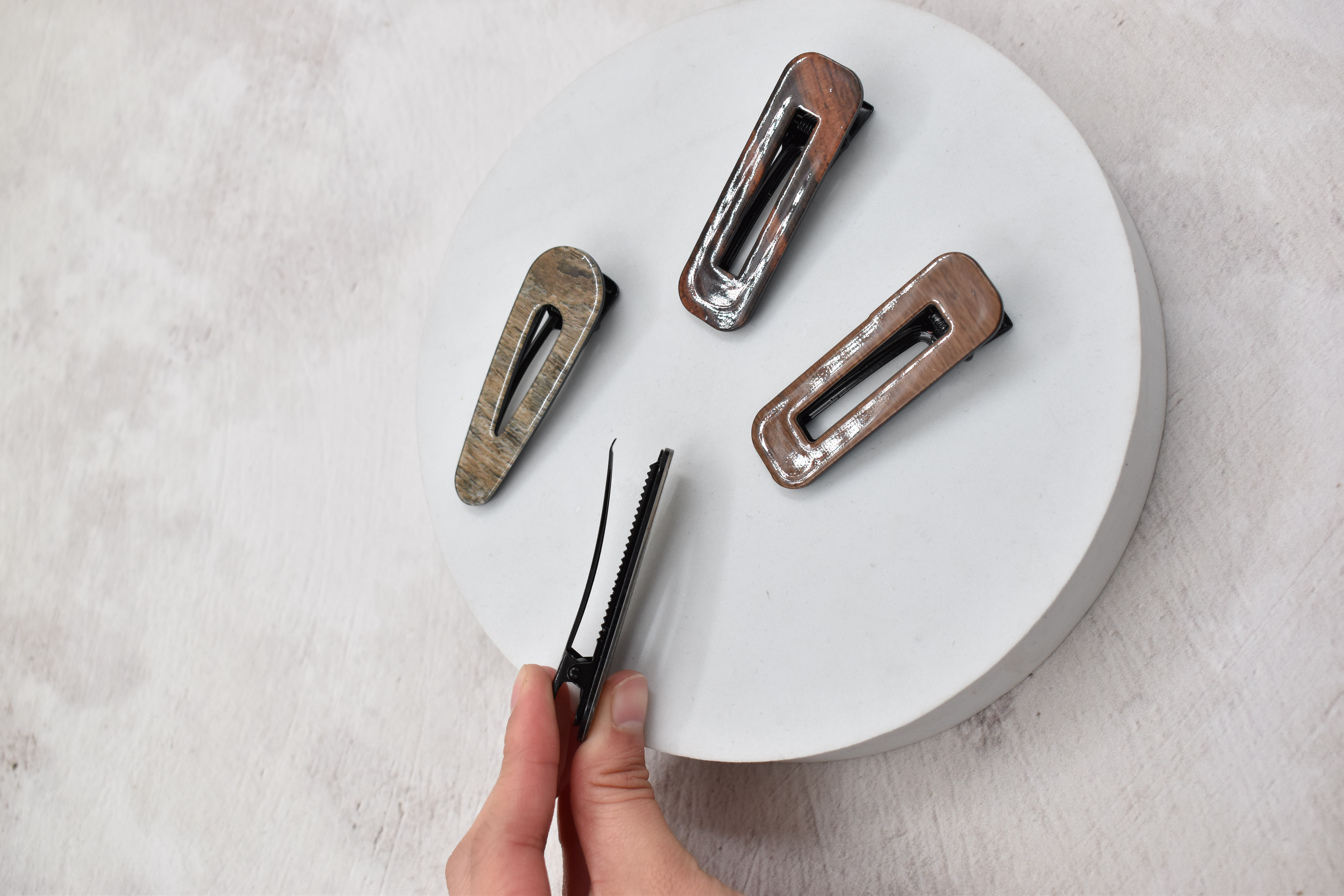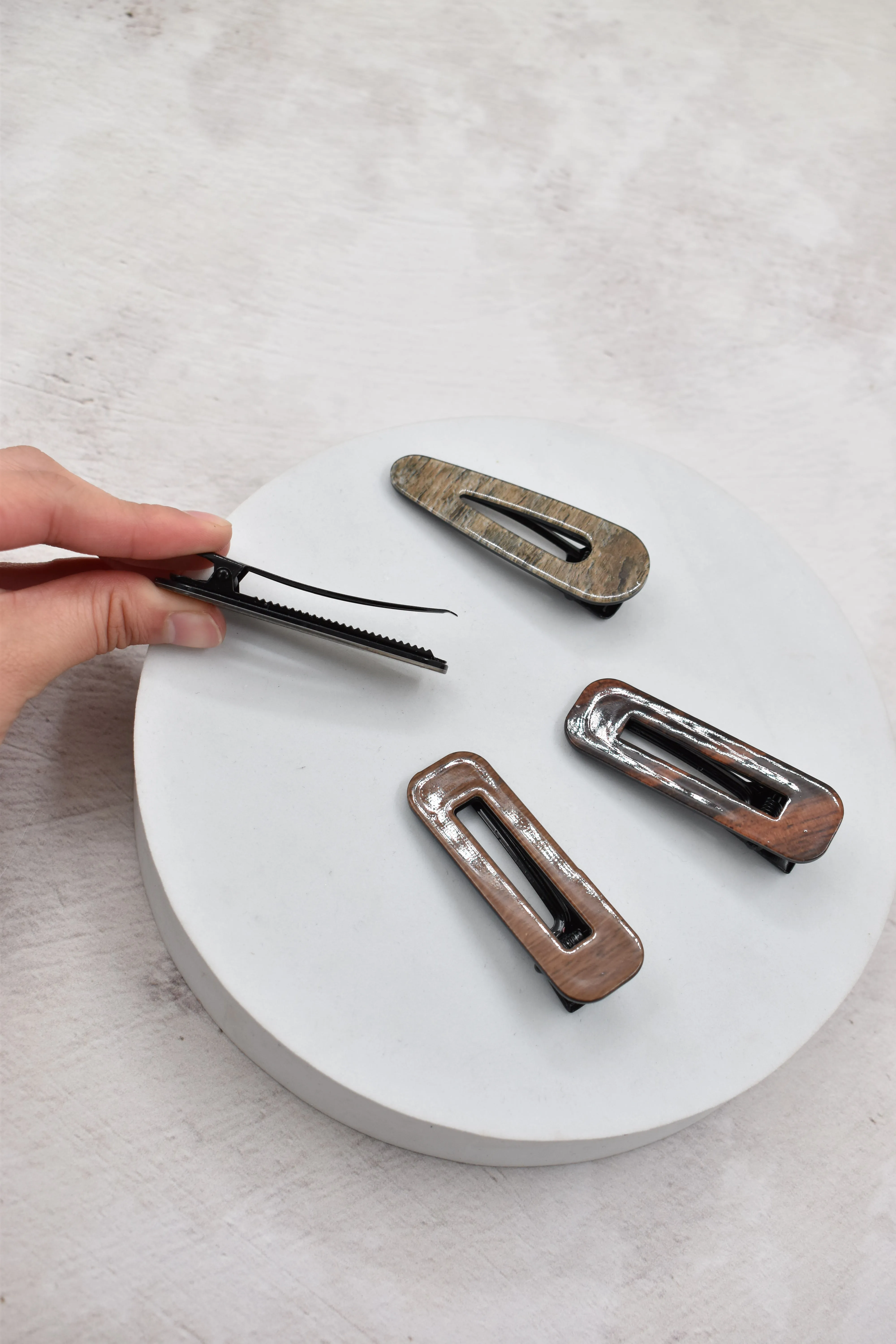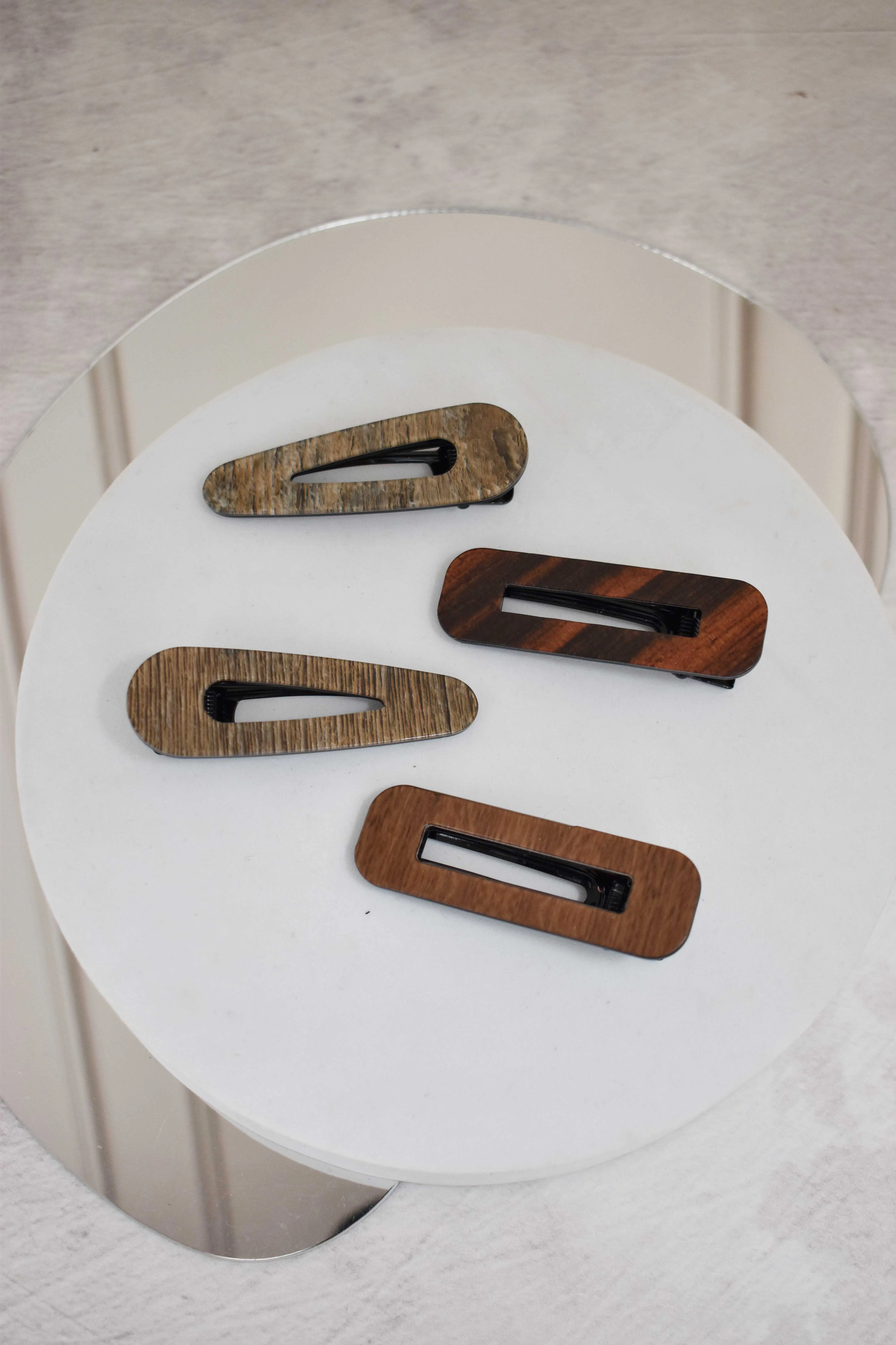 Set de 4 pasadores café tipo mármol, son cómodos de uso y se ajustan perfecto a tu cabello. Color: Café Medidas: 2cm x 6.5 cm x 1.5cm Instrucciones de cuidado: Limpiar con un paño seco