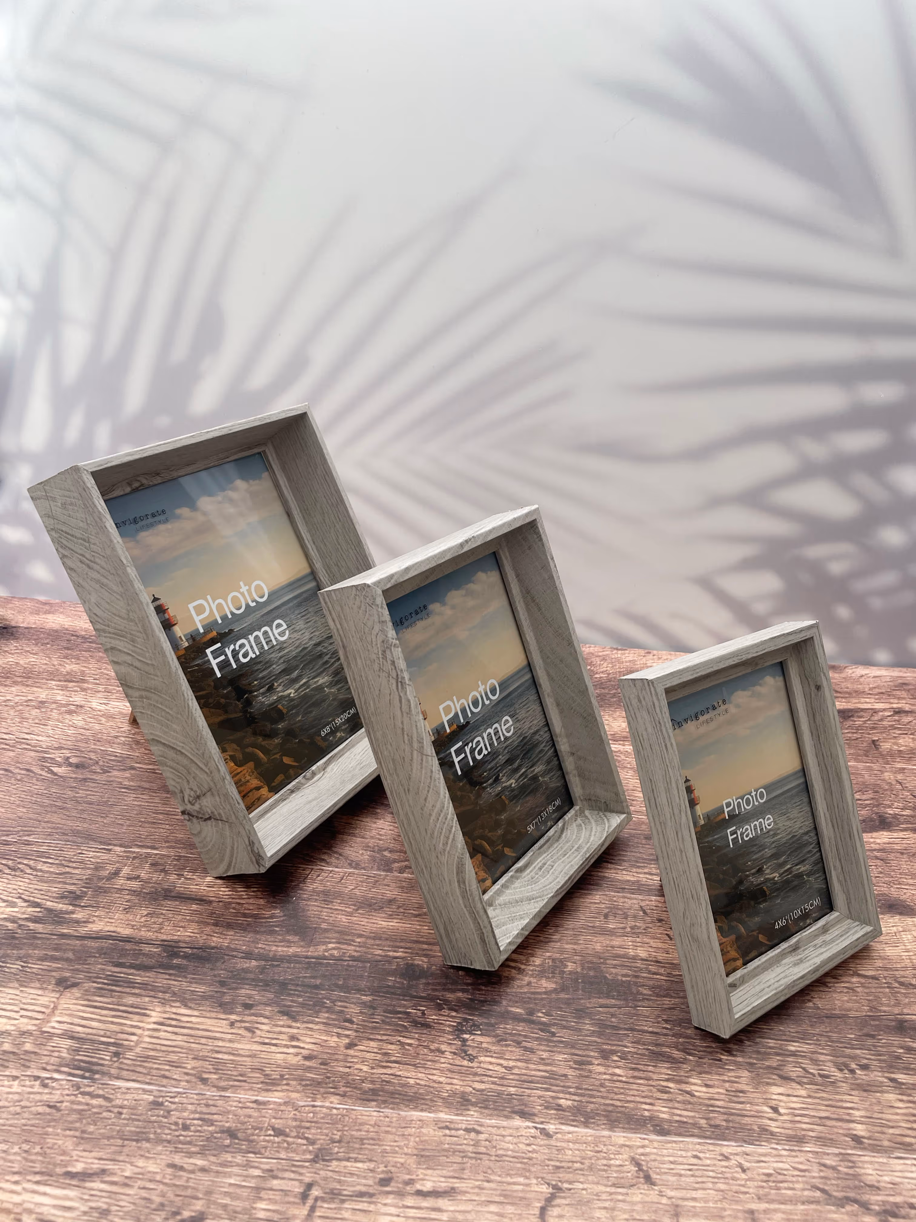 Set Tres Portarretratos Madera Comprimida Color gris; Decora tus espacios y revive tus mejores momentos. Color. Gris Material: Madera comprimida Medidas: Portarretrato 1: 17 x 12x 2 cm Portarretrato 2: 20 x 15 x 3 cm Portarretrato 3: 23 x 18 x 4.5 cm Foto Medidas: Foto 1: 10x 15cm Foto 2: 13x18cm Foto 3: 15x20cm Instrucciones de cuidado: Limpiar con paño húmedo