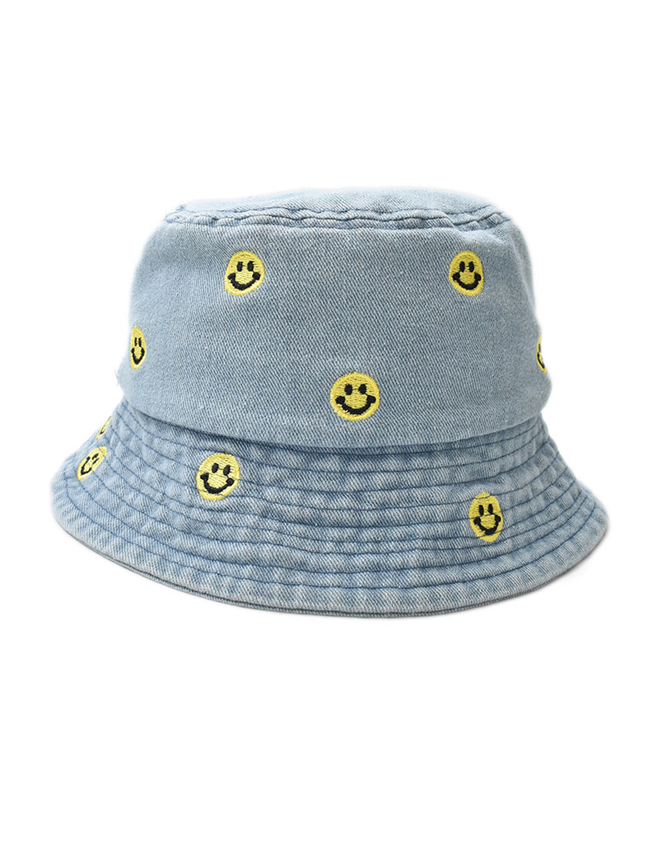 ¡El sombrero bucket de apariencia mezclilla que elevará tu outfit al siguiente nivel! Color: Azul Diseño: Caras Felices Bordadas Circunferencia: 55 cm (ajustable) Medidas: 15 x 25 x 25 cm Materiales: 100% Algodón, 100% Poliéster Instrucciones de cuidado: Lavar a mano con agua tibia (30°), usar jabón neutro, no usar detergente ni blanqueadores, no exprimir, secar horizontal a la sombra, no planchar, no usar secadora.