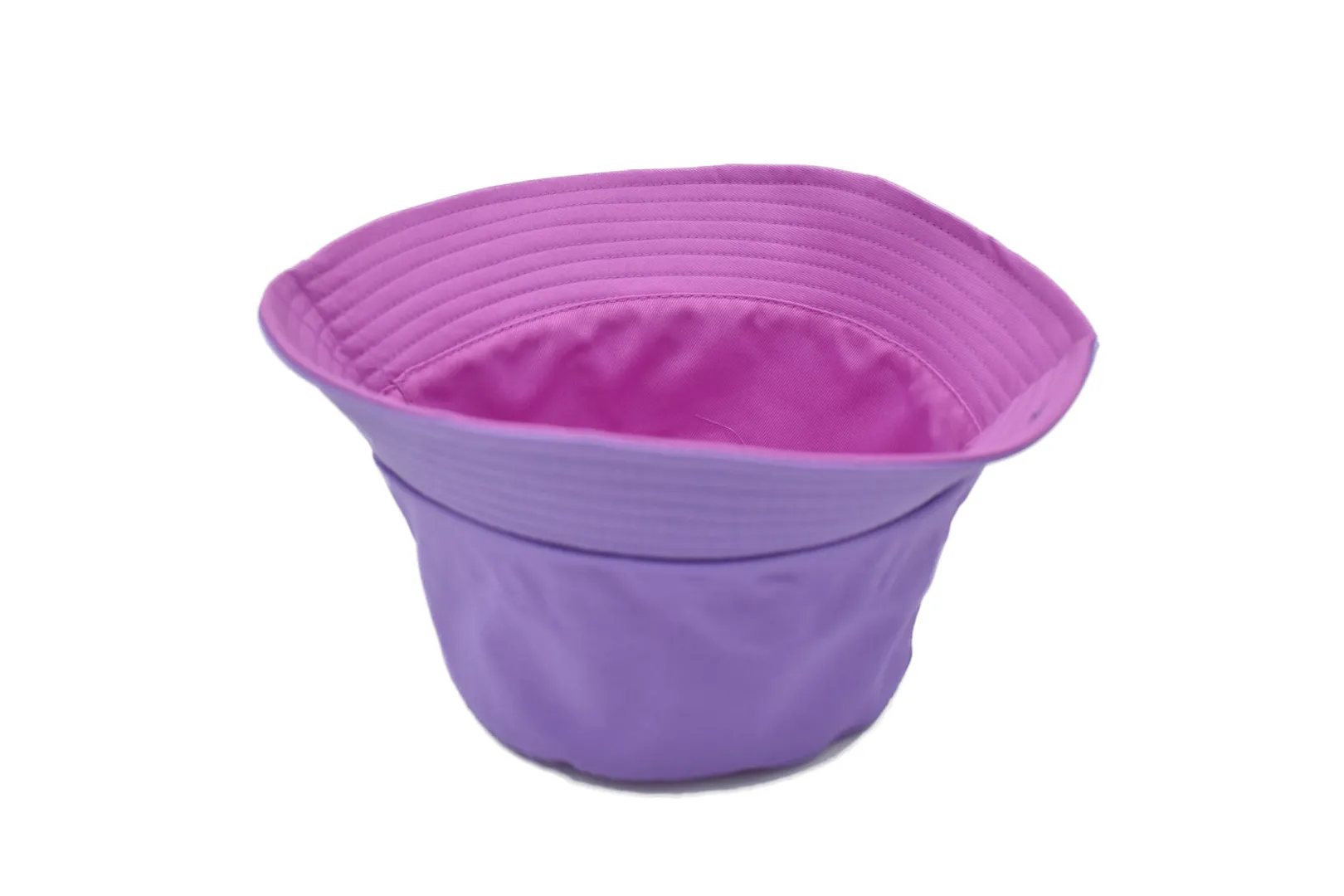 Sombrero bucket color lila y rosa , tipo pescador, detalles de 9 hilos en la misma, Perfecto para todos los días, ya sea en un paseo en playa, en caminatas, o simplemente para cualquier actividad cotidiana. Medidas: 13 cm alto x 25 cm largo Ancho de ala: 5 cm Diámetro: 56 cm Composición: 100% poliéster. Instrucciones de cuidado: Lavar a mano con agua tibia (30°C), usar jabón neutro, no usar detergente, ni blanqueadores, no exprimir, secar colgado a la sombra , no planchar.