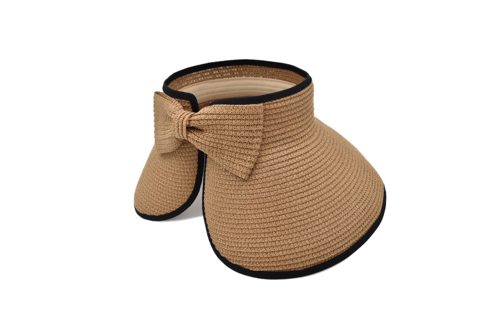 "Visera enrollable para mujer ala ancha multicolor (camel y negro), detalle de moño en la parte de atrás, cuanta con banda absorbente para el sudor, cierre de cordón ajustable. Puedes enrollarlo y meterlo en tu bolso sin preocuparte por las arrugas. Talla: Única Medidas: 19 cm alto x 36 cm (extremo a extremo) largo x 14 cm (ala) ancho Composición: 70% papel (celulosa) 30% polipropileno. Cinta 100% poliéster Instrucciones de cuidado: Limpiar con paño seco, no usar jabón, detergente ni blanqueadores, no exprimir, no planchar. "